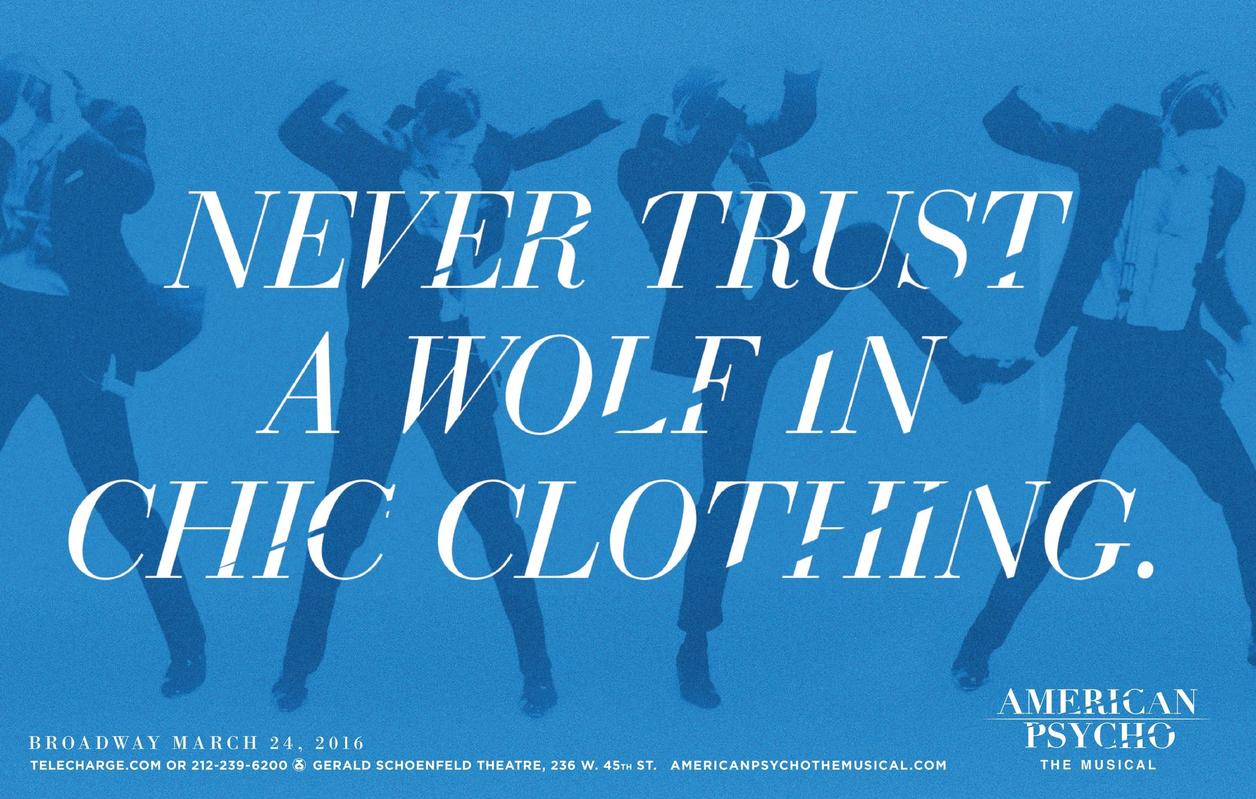 If lines could kill. Here are some of my favorites for the cutting-edge Broadway adaptation of Bret Easton Ellis’ infamous tale.