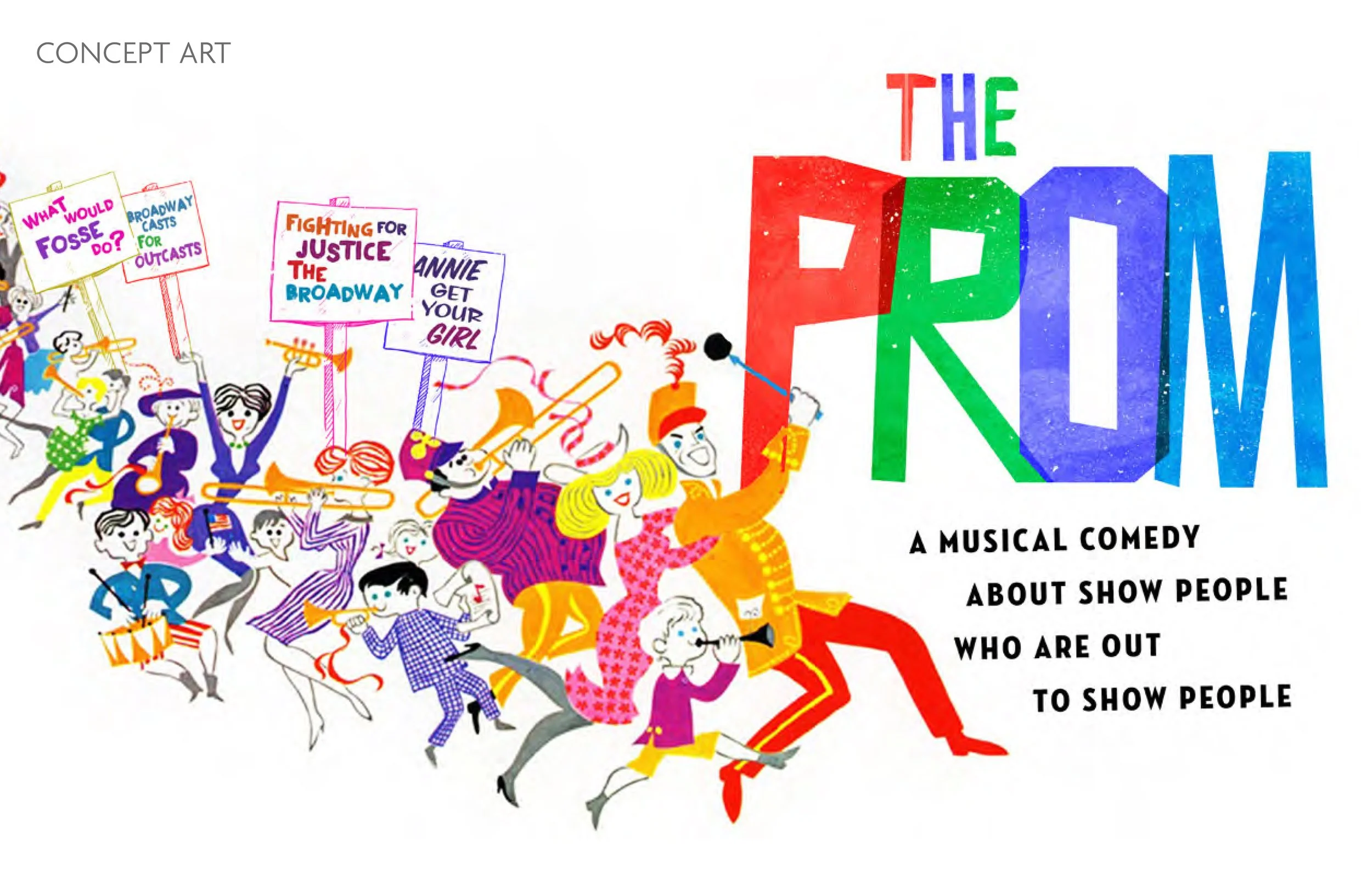 Before it became a Netflix hit starring Meryl Streep, The Prom was a totally unknown, new, original musical in need of a brand (and fanbase) that could help it take center stage amongst the oversaturated Broadway landscape of long-running hits, jukebox musicals, and movie adaptations. The Prom also had a misleading title that made you think the show was a simple high school romance with no stakes. But it is so much more! Big Broadway personalities hilariously invade a small town to fight injustice and help a student who just wants to dance with her girlfriend at prom. I had an idea for the key art and copy that could razzle-dazzle Broadway fans. Both a love letter to the Golden Age of musical comedy and a sign (or two) of the times. Let’s call it The Music Man meets The Women’s March.